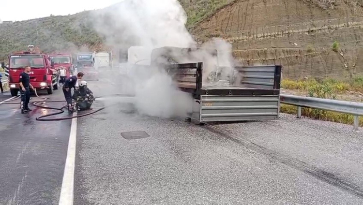 Olay, Konya-Antalya D-687 karayolunda meydana geldi. Edinilen bilgiye göre, Konya’dan Antalya istikametine seyir halindeki Ufuk A.’nın kullandığı 07 BPS 685 plaka, 07 BPM 824 dorse plakalı tırın Demirkapı Tüneli'ni geçtikten sonra dorse kısmından dumanlar yükselmeye başladı.