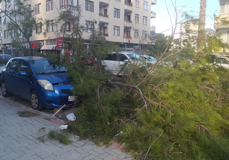 Mersin'in Silifke ilçesinde fırtına bir çok ağacı devirdi, bazı araçlara zar verdi, camları kırdı.