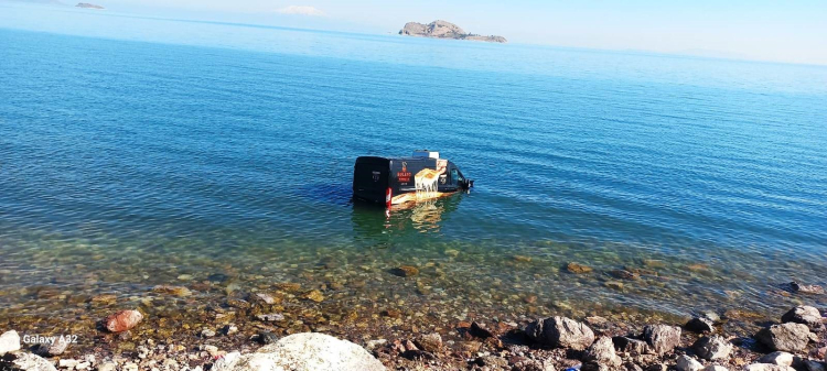 Van’ın Gevaş ilçesinde kontrolden çıkan Bülent Börek firmasına ait minibüsün Van Gölü’ne uçması sonucu 1 kişi yaralandı.