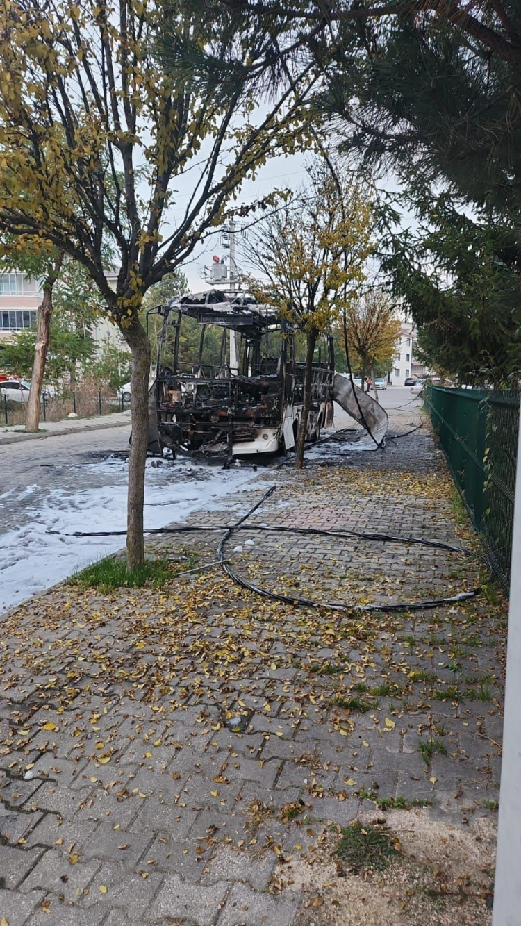 Bolu'da alev topuna dönen park halindeki minibüsten geriye iskeleti kaldı.