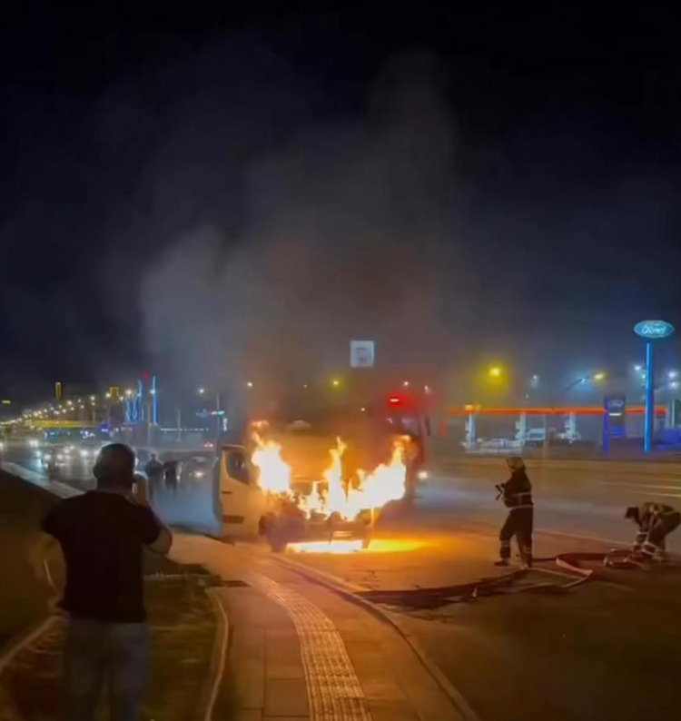 Yanan minibüste kimseye bir şey olmazken, araçta maddi hasar oluştu.