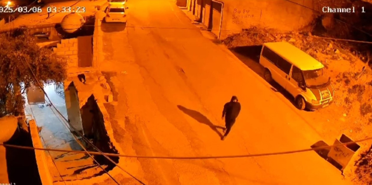 Mardin'in Derik ilçesinde 2 şüphelinin, park halindeki minibüsü iterek çalmaya kalkıştığı anlar, güvenlik kamerasına yansıdı.