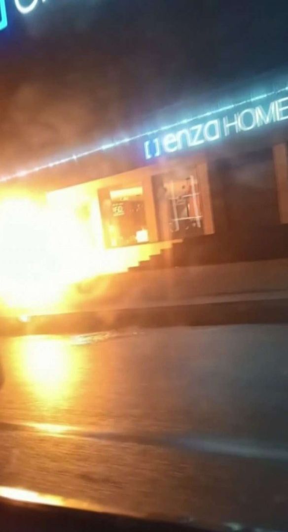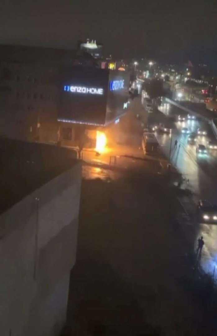 Bursa’da faaliyet gösteren mobilya satış dükkânı gece saatlerinde alev alev yandı. O anlar anbean amatör kameraya yansıdı.