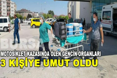 Bursa'nın İnegöl ilçesinde ikiz kardeşi ile geçirdikleri motosiklet kazası sonucu tedavi gördüğü İnegöl Devlet Hastanesinde beyin ölümü gerçekleşen Furkan Y.'nin organları 3 hastaya umut oldu.