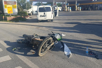 Manavgat ilçesinde seyir halindeki motosikletin, akaryakıt istasyonuna dönmekte olan hafif ticari araca arkadan çarpması sonucu meydana gelen kazada motosiklet sürücüsü yaralandı.