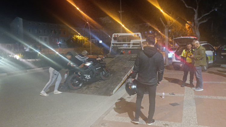 Motosikletin abartılı egzozu bulunduğunu belirleyen ekipler sürücüye 13 bin 76 TL para cezası uygulandı. Görüntü alan basın mensuplarına tepki gösteren motosiklet sürücüsü görüntü alma hakları bulunmadığı belirterek trafik ekiplerine şikayette bulundu.