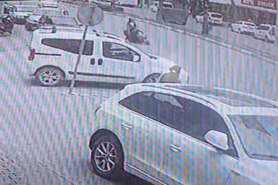 Güvenlik kamerasına saniye saniyesine yansıyan kazada yerde sürüklenen motosiklet otomobile çarparak durabilirken, büyük şans eseri kazada yaralanan olmadı.