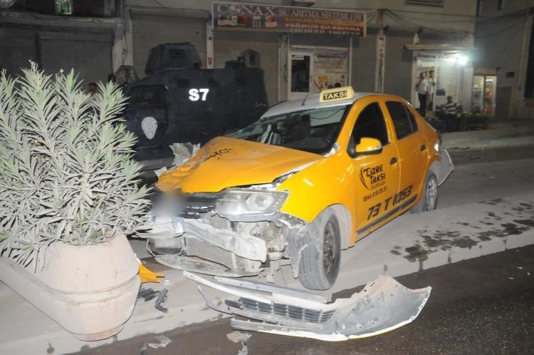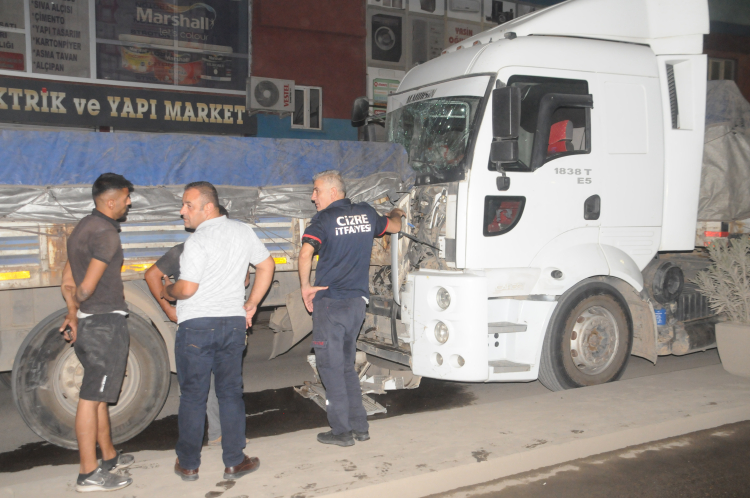 Şırnak'ın Cizre ilçesinde freni boşalan tır, önündeki taksiyi biçtikten sonra seyir halindeki tıra çarparak durabildi.