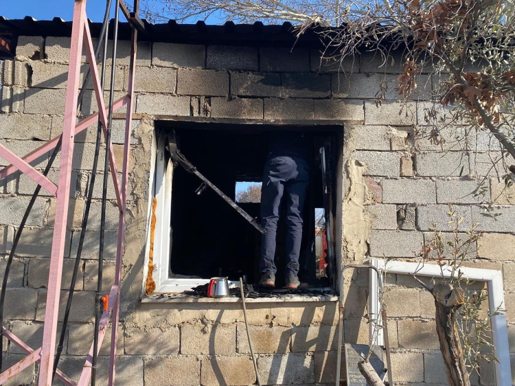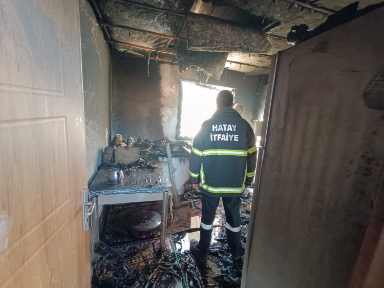 Hatay’da alevlere teslim olan müstakil evde hasar oluştu.