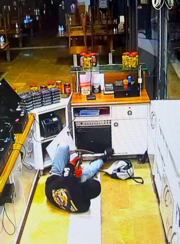 Camdan atlayarak içeri giren şüpheli, yanında getirdiği çapayla kasayı açmak için dakikalarca uğraştı. Düşe kalka kasayı açmayı başaran şüpheli aldığı paralarla kayıplara karışırken, o anlar güvenlik kamerasına anbean yansıdı. Bu esnada kız arkadaşının da dans ettiği görüntüler güvenlik kamerasına yansıdı.