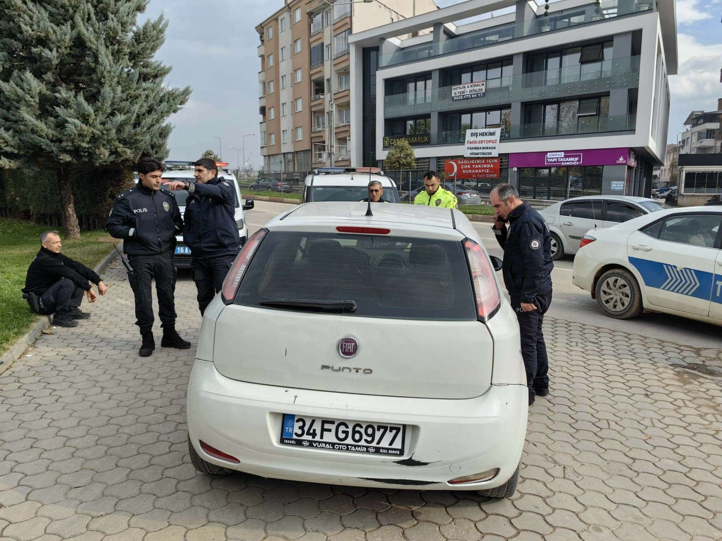 İnegöl girişinde bekleyen polis ekiplerini gören şüpheliler, araçla kaçmaya başladılar.