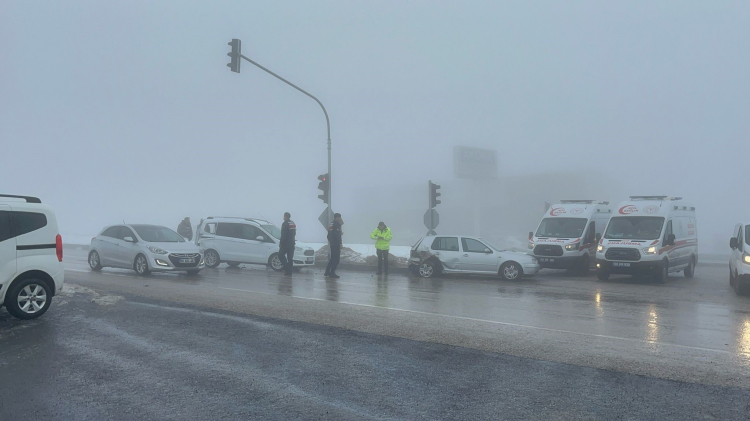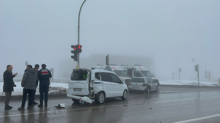 Nevşehir'de sürücüsü belirlenemeyen tır, yoğun sis nedeniyle kırmızı ışıkta bekleyen hafif ticari araca çarparak kaza yerinden kaçtı.