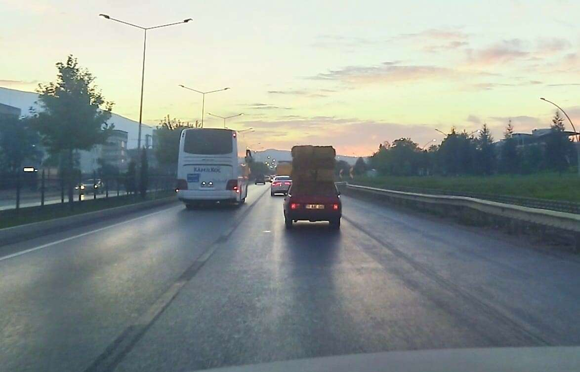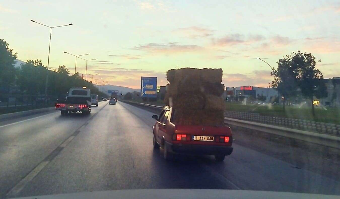 İnegöl'de henüz sürücüsü belirlenemeyen 11 AAE 040 plakalı otomobil, üzerinde 6 adet saman balyasıyla Bursa istikametine seyretti.
