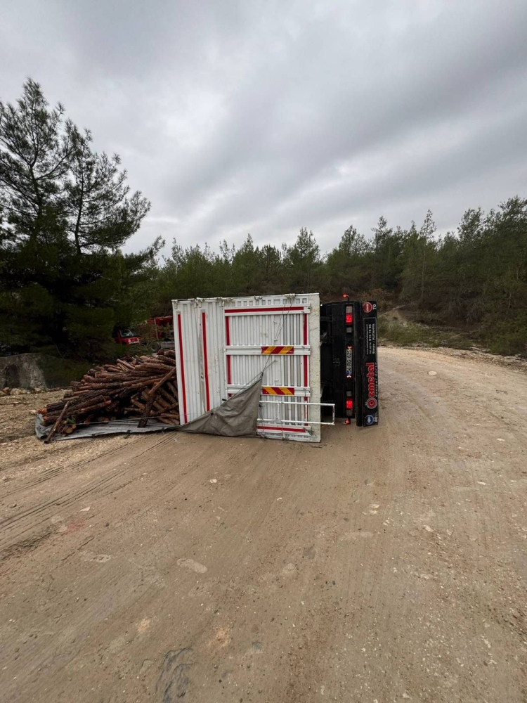Odun Yüklü Kamyon Yan Yattı: 3 Yaralı
