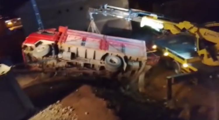 Kazayı gören çevredekiler hemen yardıma koşarken, devrilen aracı kaldırmak için çekici talep edildi. Çekici yardımıyla kamyonet devrildiği yerden çıkarıldı.