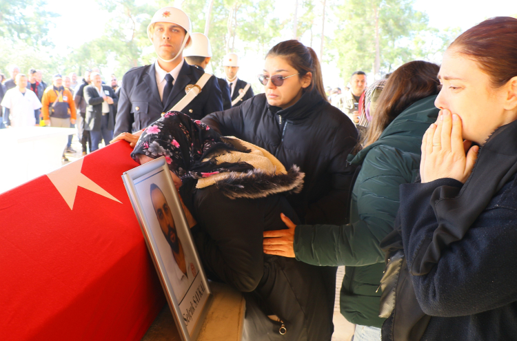Oğlunun Türk bayrağına sarılı tabutuna sarılan anne, “Kalk ne olur ölmedim de” diyerek gözyaşı döktü.