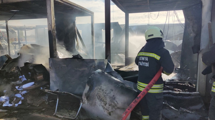 Konya'nın Kulu ilçesinde okul inşaatında bulunan işçilerin kaldığı ve malzemelerin koyulduğu 7 konteyner yanarak kullanılmaz hale geldi.