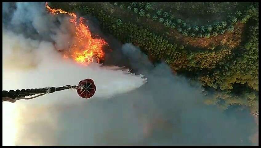 Ormana ait yangın söndürme helikopterlerinin havadan müdahalesi yangının söndürülmesinde önemli rol oynadı. O anlar da helikopter kamerasına yansıdı.