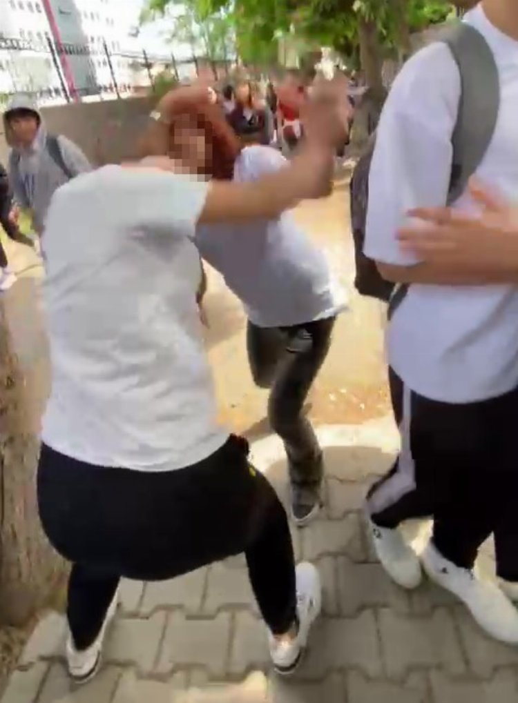 Tartışmanın büyümesiyle okul çıkışında buluşan kızlar kavgaya tutuştu. Diğer öğrenciler ise kızların başında toplanarak, kavgayı izledi.