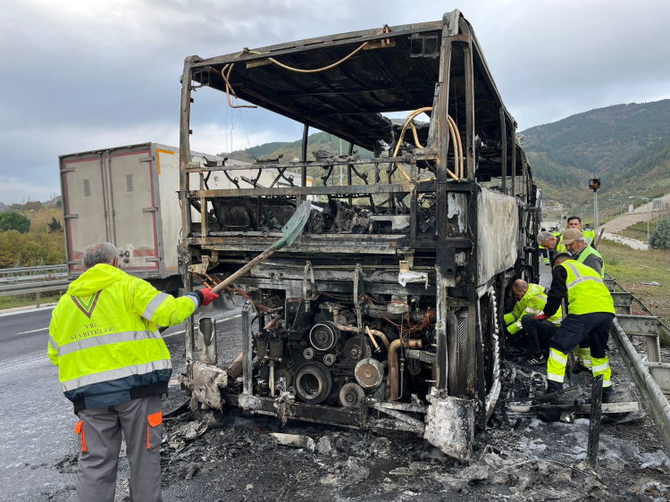 Gebze-Orhangazi-İzmir Otoyolu Orhangazi Tüneli yakınlarında meydana gelen otobüs yangınında Çanakkale'nin Lapseki ilçesinden İstanbul'a geziye giden öğrencileri taşıyan otobüs motor bölümünden alev aldı.