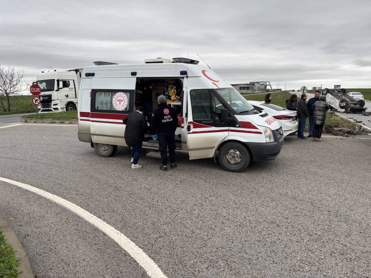 Çarpmanın şiddetiyle E.Ü. idaresindeki otomobil, defalarca takla atarak ters döndü. İhbar üzerine olay yerine itfaiye, ambulans, jandarma ve polis ekipleri sevk edildi. Araçta sıkışan yaralılar, itfaiye ekipleri tarafından kurtarıldı. Olay yerinde ilk müdahalesi yapılan 2 yaralı, ambulansla Trakya Üniversitesi Tıp Fakültesi Hastanesi’ne kaldırıldı. Saniye saniye kameraya yansıyan kazayla ilgili jandarma ekipleri inceleme başlattı.