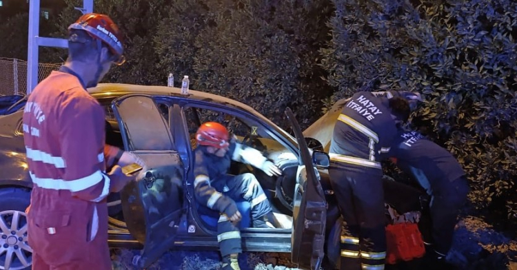 Hatay'da elektrik direğine çarparak zeytinliğe uçan otomobilin sürücüsü yaralandı.