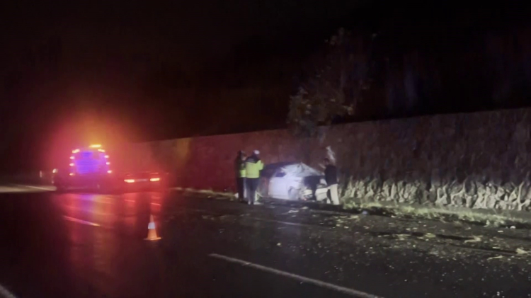 Otomobil İstinat Duvarına Çarptı: 2 Kişi Ölümden Döndü