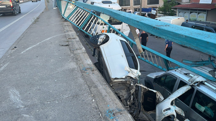 Kaza, Eskihisar Feribot Yolu'nda meydana geldi. Edinilen bilgiye göre sürücü B.H'nin direksiyon hakimiyetini kaybettiği 34 JT 9189 plakalı otomobil, kaldırımın üstüne çıkarak demir korkulukları yıktı. Otomobil, 3 metrelik duvarda asılı kalırken demir korkuluk, park halindeki 3 aracın üstüne düşerek hasara yol açtı. İhbar üzerine olay yerine sağlık ve polis ekipler sevk edildi. Ekipler kısa sürede olay yerine gelirken sürücü B.H., kazayı yara almadan atlattı.