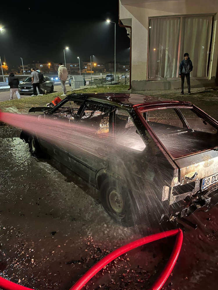 Durumun bildirilmesi üzerine olay yerine itfaiye ekipleri sevk edildi. İtfaiyenin müdahalesiyle yangın söndürülürken otomobil adeta hurda yığınına dönerek kullanılamaz hale geldi.