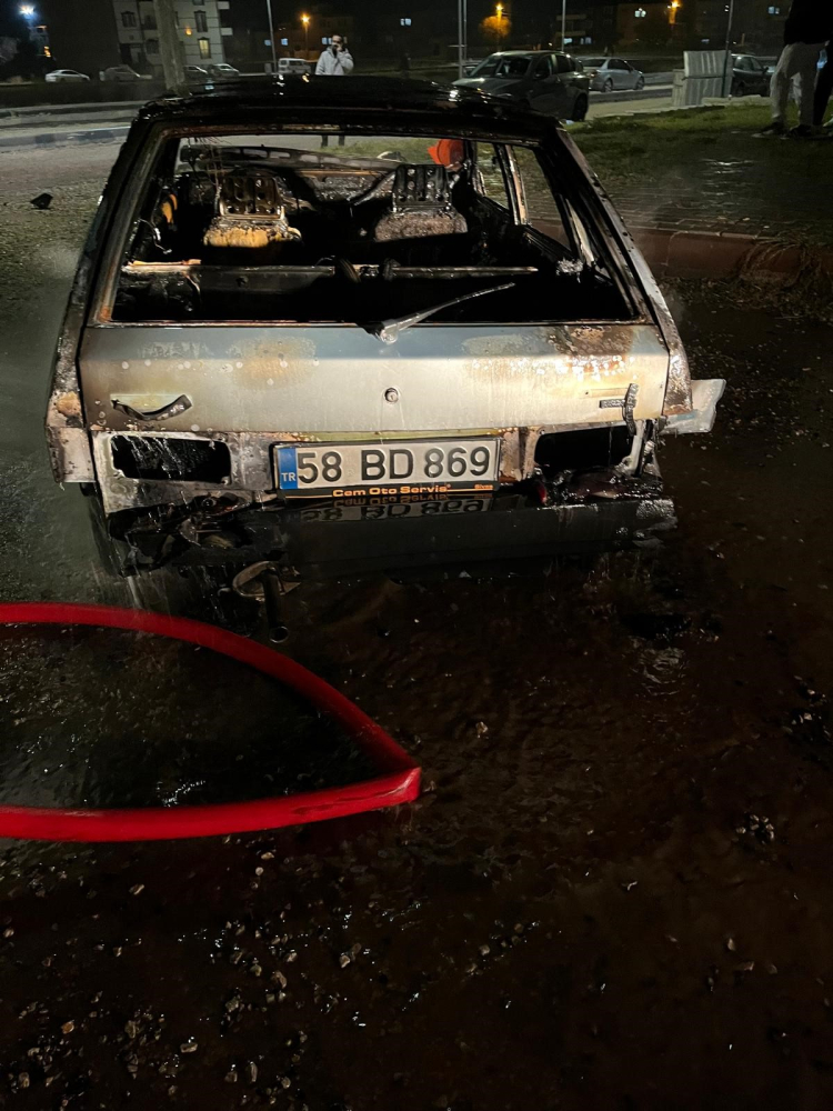 Sivas’ta alev alan otomobil yanarak kullanılamaz hale geldi.