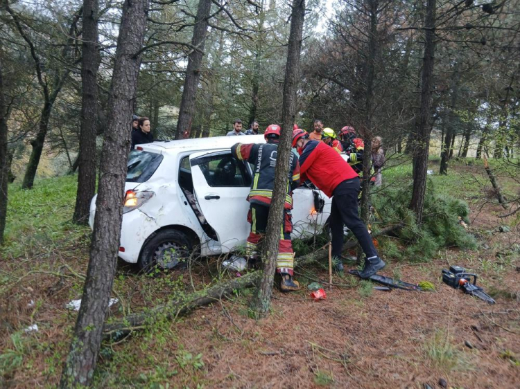 Balıkesir'de sürücüsünün direksiyon hâkimiyetini kaybettiği otomobil ormanlık alana uçtu. Araçta bulunan 2 kişi yaralı olarak sağlık ekiplerine teslim edildi.