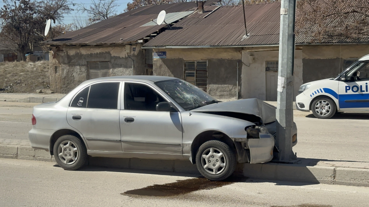 Elazığ’da sürücüsünün direksiyon hakimiyetini kaybettiği otomobil refüje çıkarak aydınlatma direğine çarptı.