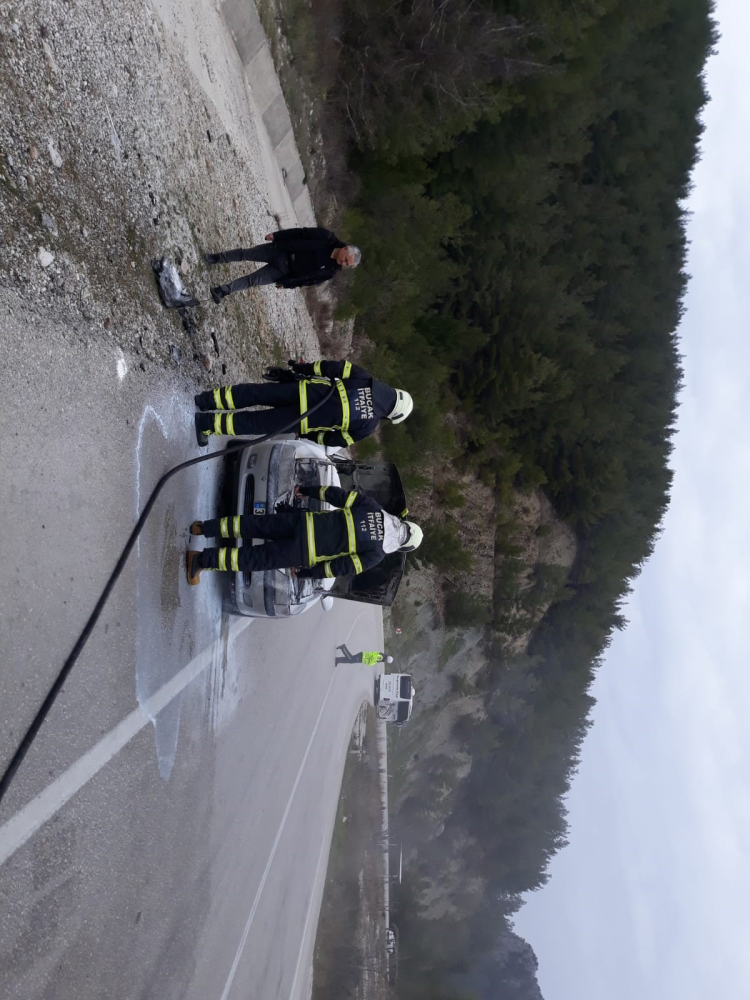 İhbar üzerine bölgeye jandarma ve itfaiye ekipleri sevk edildi. Araç sürücüsünün yangın söndürme tüpü ile kontrol altına almaya çalıştığı yangın bölgeye gelen itfaiye ekiplerinin müdahalesi ile kontrol altına alınarak söndürüldü. Araçta maddi hasar meydana geldi.