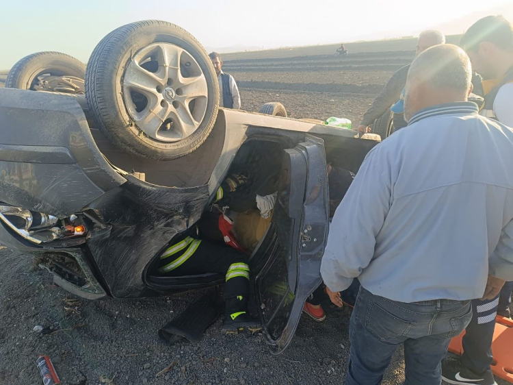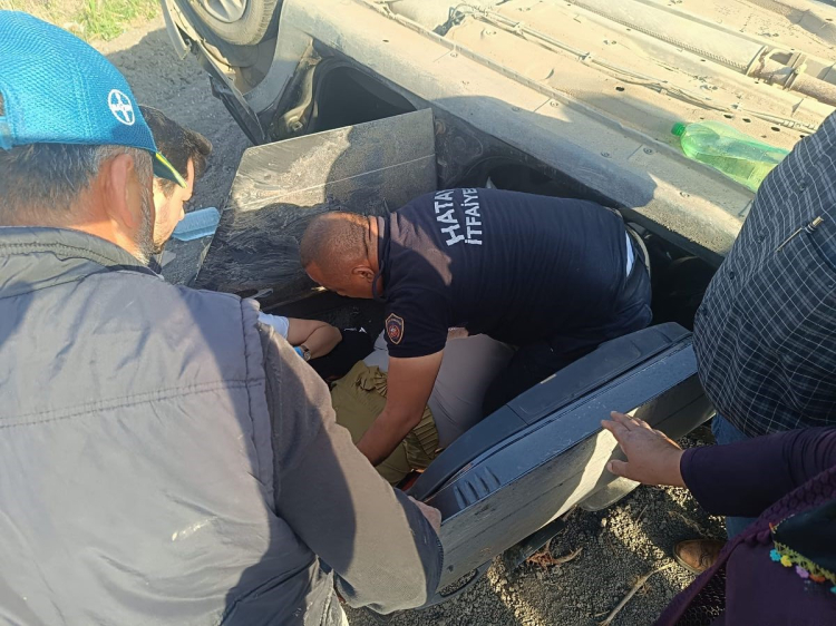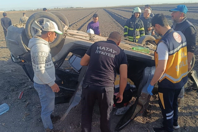 Hatay’da takla atarak ters dönen otomobildeki 3 kişi yaralandı.