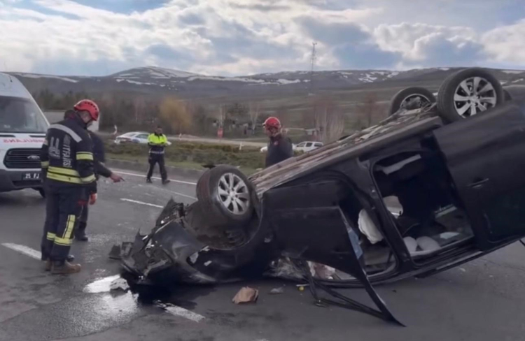 Erzurum istikametinden seyir halinde olan bir araç ile kavşaktan ana yola çıkan otomobilin çarpışması sonucu meydana gelen kazada araçlardan biri takla atarak ters döndü.