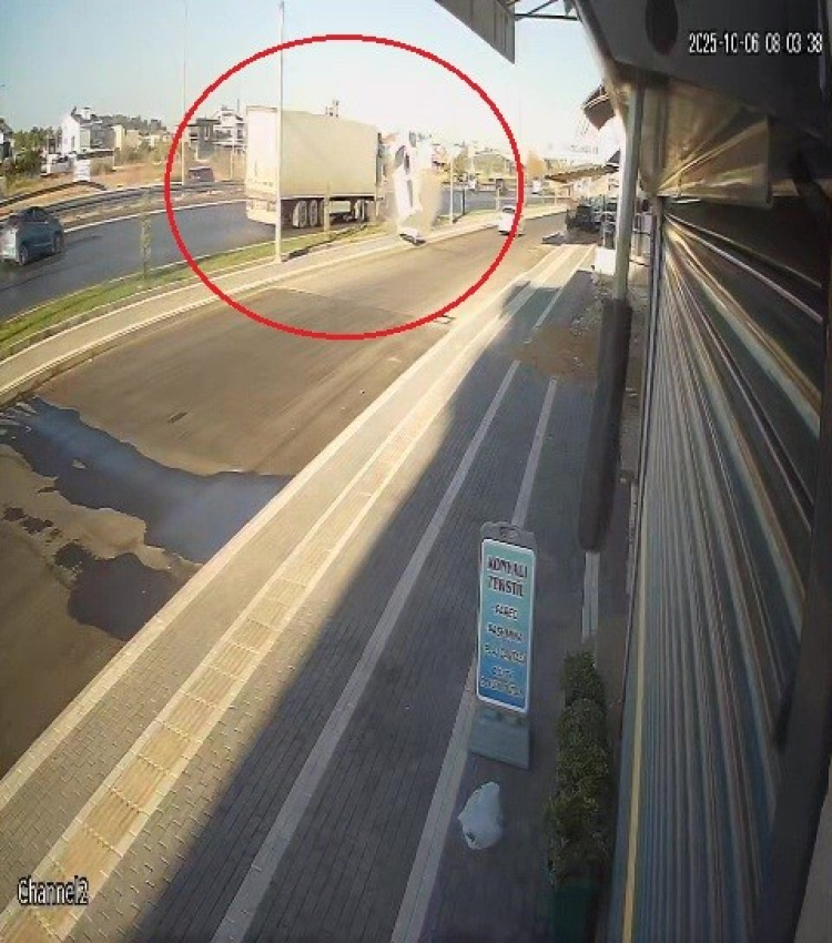Tırın önünde bir süre sürüklenen araç ardından takla attı. Kazada yaralanan ve vatandaşlarca araçtan çıkarılan hafif ticari araç sürücüsü Emine K., 112 Acil Sağlık ekiplerinin olay yerindeki ilk müdahalesinin ardından ambulansla hastaneye kaldırıldı. Kaza anı ise bir iş yerinin güvenlik kamerasına saniye saniyesine yansıdı. Görüntülerde, sol şeritteki hafif ticari aracın aniden sağ şeride geçmeye kalktığı sırada tırın tamponuna dokunarak takla atarak ters durduğu görüldü.