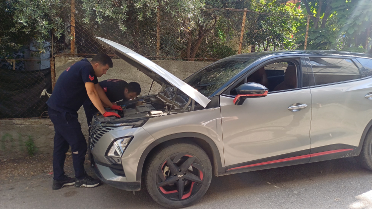 Sesin motor kısmından geldiğini fark eden sahibi, durumu itfaiye ekiplerine bildirdi. Bölgeye gelen itfaiye ekipleri aracın motor kısmına sıkışan yavru kediyi kurtardı.