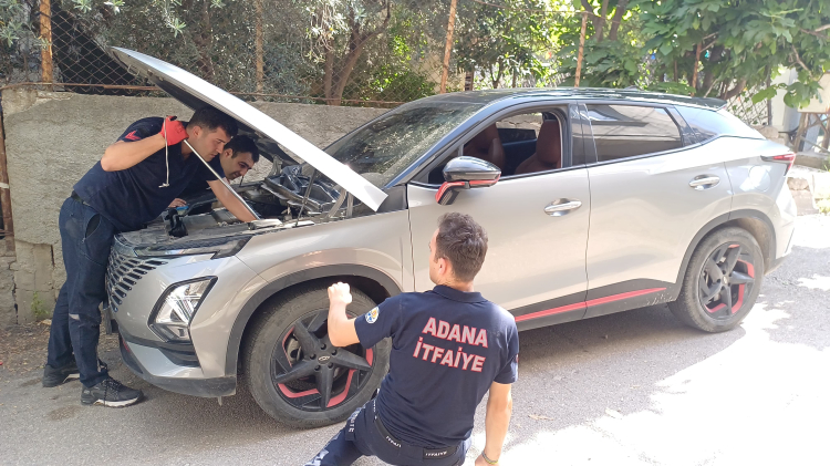 Adana'da bir otomobilin motor kısmına sıkışan yavru kedi, itfaiye ekiplerinin çalışmasıyla kurtarıldı.