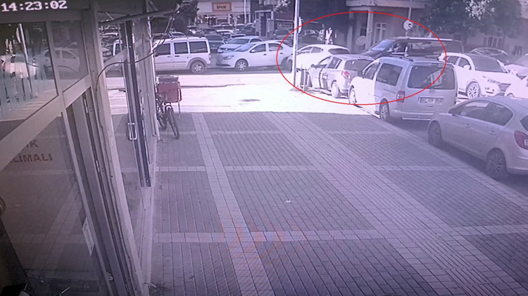 Güvenlik kamerasına yansıyan görüntülerde, Transporter'in kavşak sisteminde araca çarptığı anlar ve ardından otomobilin 7001 Sokak üzerinde park halindeki bir başka otomobile çarptığı görüldü. Kazada şans eseri yaralanan olmazken, araçlarda hasar meydana geldi.