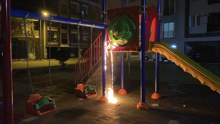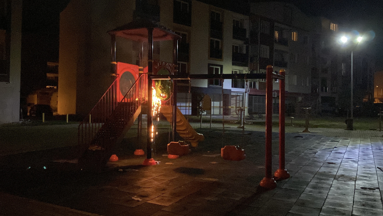 Aydın'ın Efeler ilçesinde iddiaya göre 3 şahıs çocuk oyun parkındaki plastik kaydırağı ateşe verip kaçtı.