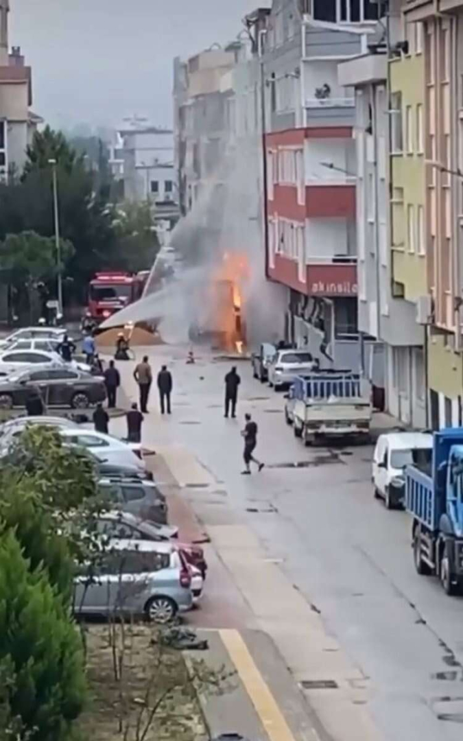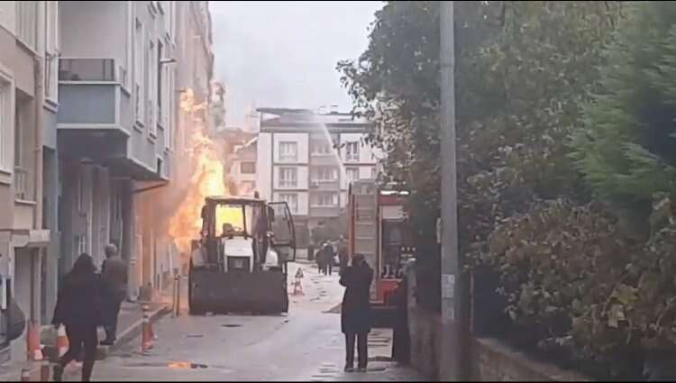 Binaların hemen dibinde meydana gelen olayda iş makinesi, bir anda alev topuna dönerken, mahalleli de büyük panik yaşadı. Vatandaşların ihbarıyla olay yerine 112 İtfaiye ve 187 Doğalgaz Acil ekipleri sevk edildi.