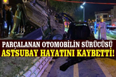 Parçalanan otomobilin sürücüsü astsubay hayatını kaybetti: Kaza anı saniye saniye kamerada