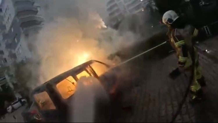 Öte yandan, aracın yanma anı kısa sürede olay yerine intikal eden itfaiye erlerinin kask kameralarına yansıdı. Görüntülerde, araçtan hızla inen itfaiye erlerinin yanan araca ve alevlerin sıçradığı diğer araca müdahale ederek yangını kısa sürede kontrol altına aldığı görülüyor.