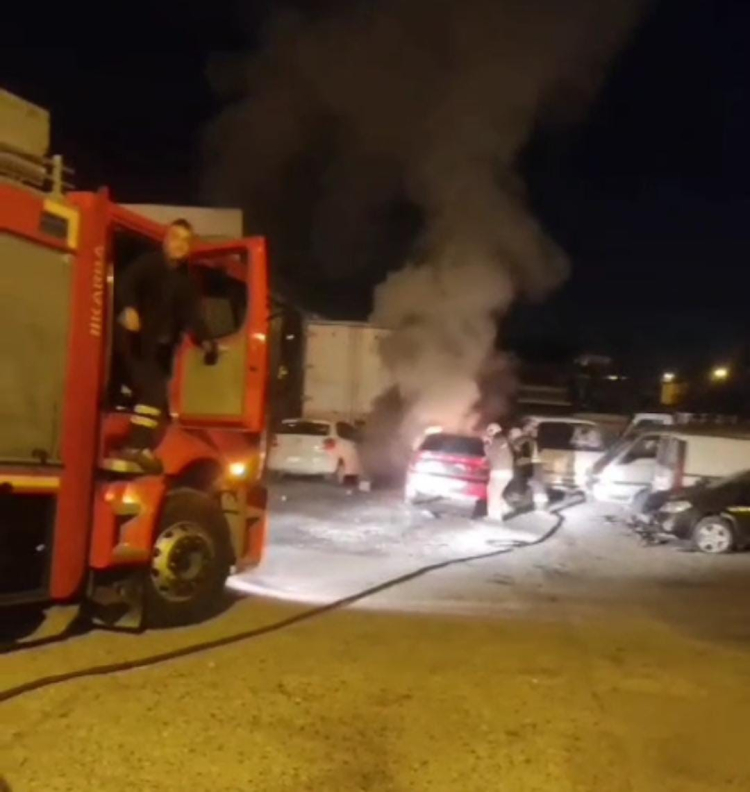 Edinilen bilgilere göre, İskenderun ilçesinde yediemin otoparkında park halinde bulunan bir otomobilin motor kısmı yanmaya başladı.