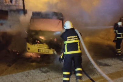 Batman'da park halindeki bir minibüs yandı.