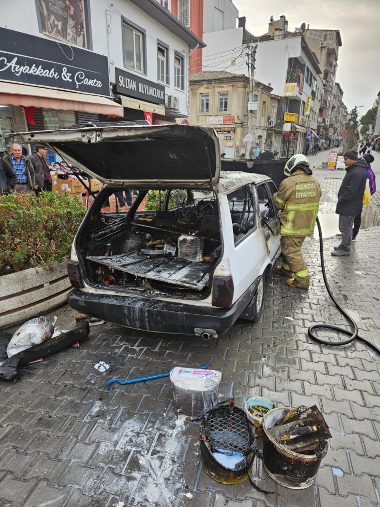 Edinilen bilgiye göre, Balıkesir'in Burhaniye ilçesi Cumhuriyet Meydanı'nda park halindeki 10 BFY 71 plakalı otomobilin ön kısmından dumanlar çıkmaya başladı. Vatandaşlar hemen itfaiyeye bilgi verdi.