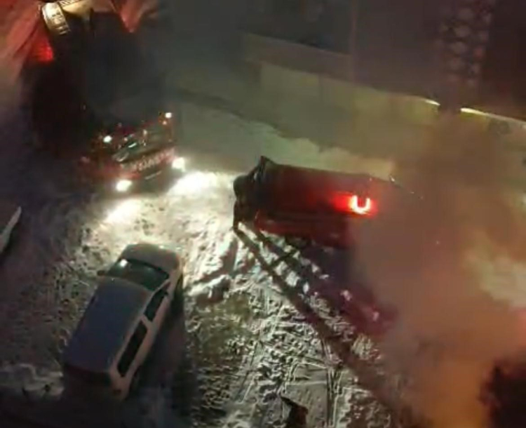 Çevredeki bir vatandaş İtfaiye ekipleri gelene kadar, yanan otomobile kar küreği ile kar atarak müdahale etti. O anlar ise çevredeki bir başka vatandaş tarafından cep telefonu ile görüntülendi.