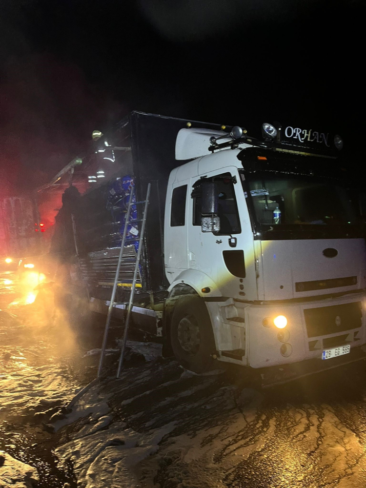 Alev topuna dönen kamyondan yükselen alevler ekiplerin çabasıyla söndürüldü. Kamyonda büyük çapta maddi hasara yol açan yangının çıkış nedenine ilişkin inceleme başlatıldı.