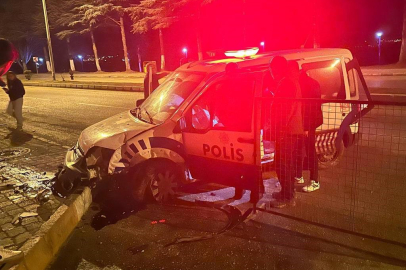 Isparta'nın Eğirdir ilçesinde, polis memurunun kullandığı ekip aracı, çarşı merkezinden gelen bir ihbara giderken ıslak zemin nedeniyle kontrolden çıkarak kaldırıma çarptı.