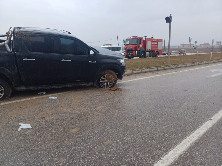 Kaza, Alaca ilçesi Zile kavşağı Yozgat istikametinde meydana geldi. Edinilen bilgiye göre, Veli Can İ. yönetimindeki 01 CIN 24 plakalı Toyota marka pikap, sürücüsünün kontrolünden çıkarak refüje çıkıp takla attı. Kazada sürücü ile araçtaki Ümmü İ., Hamza İ., Makbule Nur İ. ve Ebrar Ş. yaralandı.